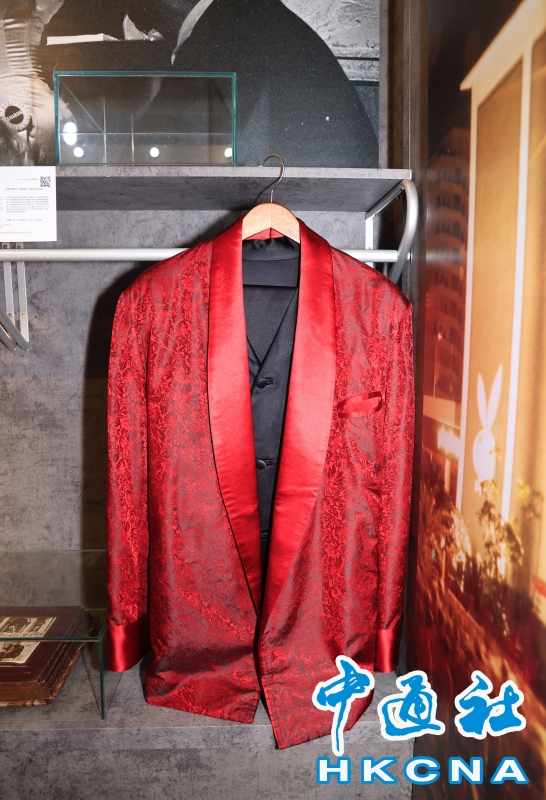 “譜寫傳奇:《花花公子》休·海夫納 x 瑪麗蓮·夢露”將於1月 27日至2月1日在香港中環藝穗會開展,免費展出瑪麗蓮·夢露和《花花公子》創立人休·海夫納的逾50件珍貴藏品。休·海夫納的經典吸煙夾克、絲綢睡衣及拖鞋;花花公子25周年紀念粉紅色飛行員夾克及牌匾。(香港中通社記者 曹文毓攝) 香港中通社圖片