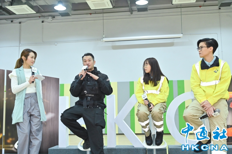 •   香港建造學院上水院校,於3月1至2日一連兩天舉辦“課程資訊日”,吸引不少有意入行的中學生及在職青年前來體驗。歌手吳浩康(左二)以嘉賓身份出席啟動禮並分享心路歷程。 香港中通社圖片