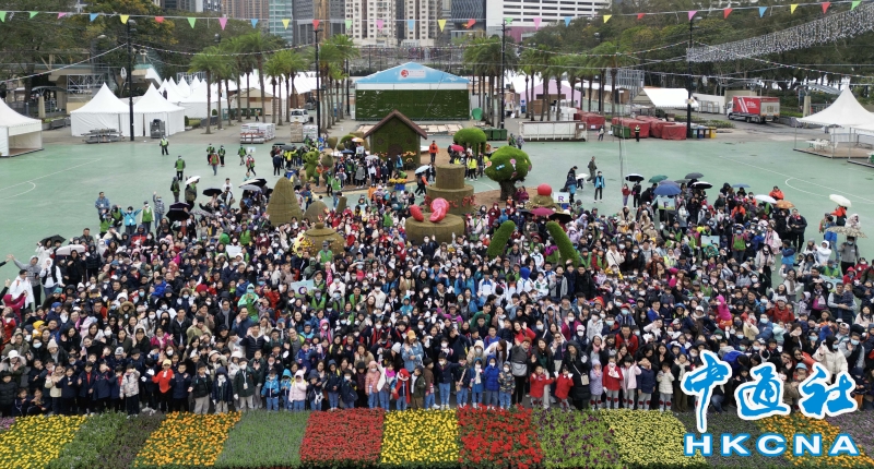 超過一千一百名學生為香港花卉展覽鑲嵌大型花壇