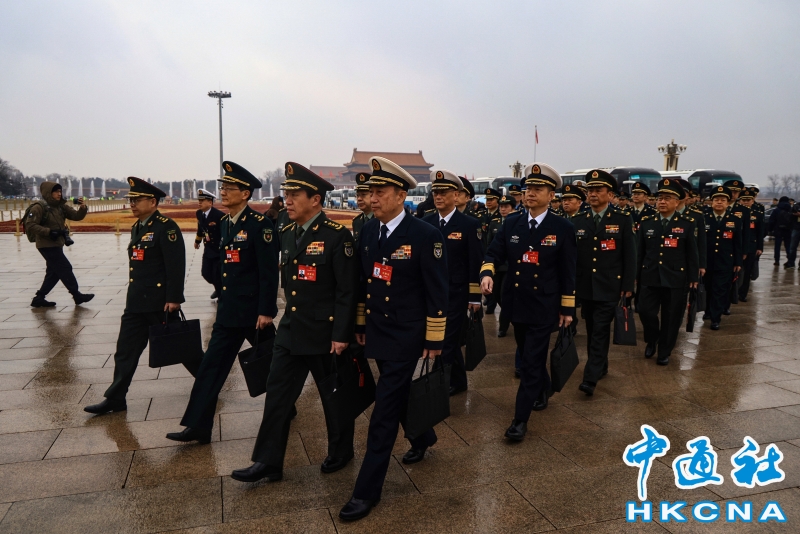 3月5日,十四屆全國人大二次會議在北京人民大會堂開幕。圖為解放軍和武警部隊代表團列隊入場。(香港中通社記者 許其皓攝) 香港中通社圖片