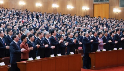 (中國兩會)梁振英、何厚鏵列席十四屆全國人大二次會議第二次全體會議