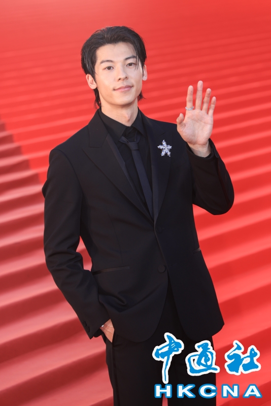 •   4月14日,第42屆香港電影金像獎頒獎典禮在香港文化中心舉行。圖為台灣演員許光漢亮相紅地毯。(香港中通社記者 許其皓攝) 香港中通社圖片