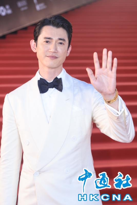 •   4月14日,第42屆香港電影金像獎頒獎典禮在香港文化中心舉行。圖為台灣演員吳慷仁亮相紅地毯。(香港中通社記者 許其皓攝) 香港中通社圖片