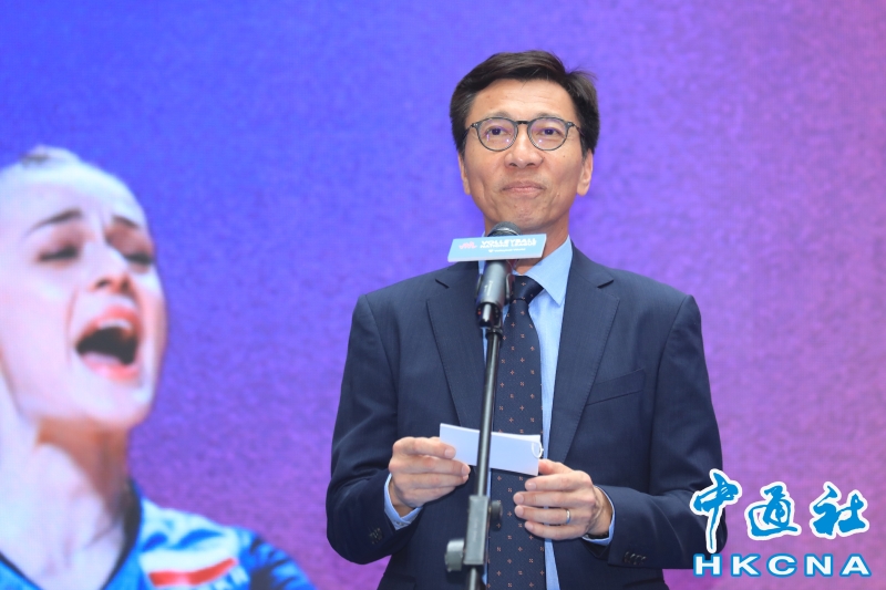 •   4月27日,世界女排聯賽香港2024賽事記者招待會舉行。圖為香港文化體育及旅遊局體育專員黃德森致辭。(香港中通社記者 許其皓攝) 香港中通社圖片