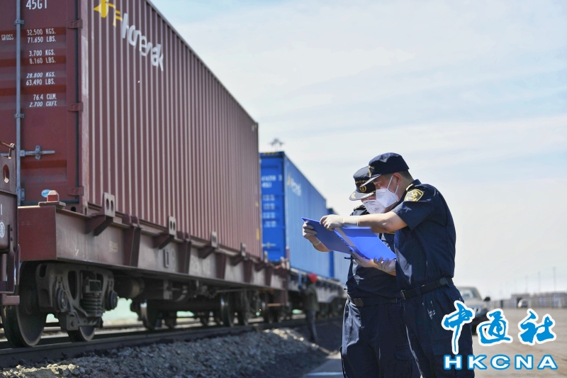 •   中國駐德國大使館經商處公使翟謙當地時間3日說,去年中歐貨物貿易額高達7830億美元,中歐雙向投資存量超過2500億美元。圖為海關工作人員核對列車裝載的貨物。 香港中通社圖片