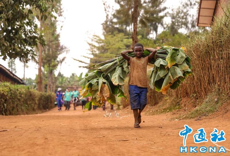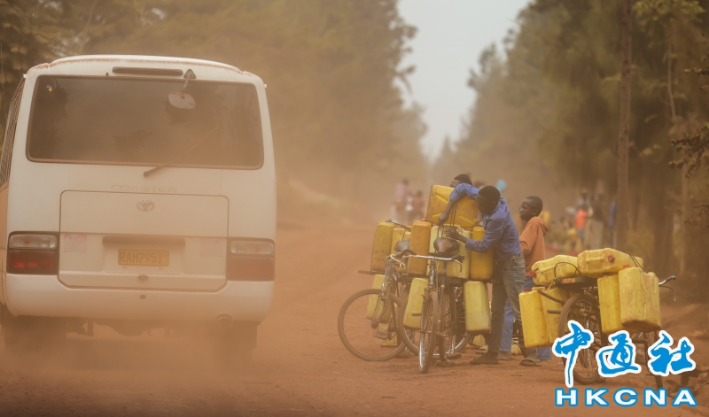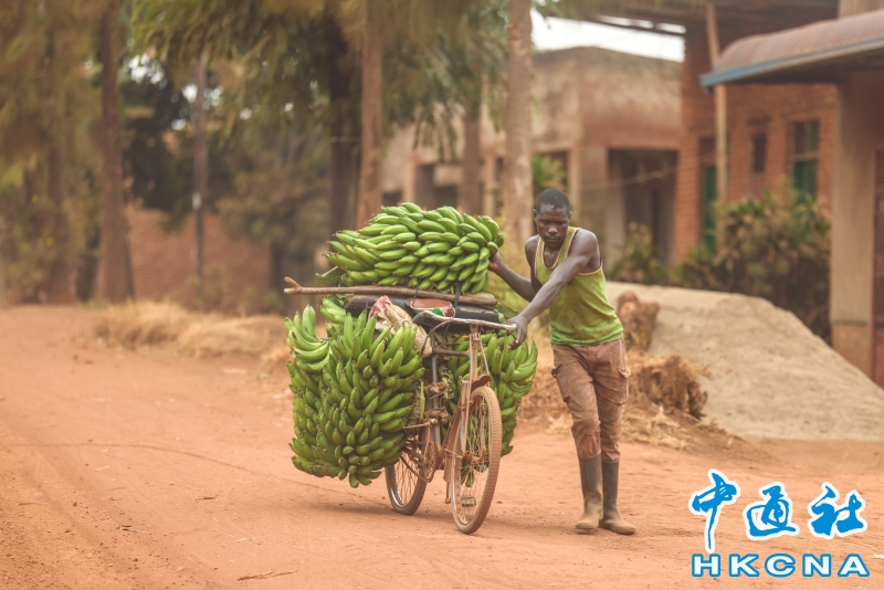 盧旺達共和國是中非東部主權國家,人口主要居住在農村地區,以年輕人為主,密度在非洲國家中位居前列。中通社記者近日實地探訪盧旺達首都基加利一村落,發現當地生活方式趨於原始,大量房屋用泥磚建造,隱藏在田地之間。村民通常使用黃色水桶集中來到一處河流地點接取所有生活用水,屋內也並未設有廁所或浴室。道路中央放眼望去紅土一片,由於長旱季,塵土飛揚,甚至染紅了大部分綠葉;道路兩旁多為田地,種植大量香蕉、牛油果等作物,因此當地食物亦多選用香蕉直接烹飪。由於村落內大量房屋尚未通電,因此村民通常日落而息。(香港中通社記者 曹文毓攝) 香港中通社圖片