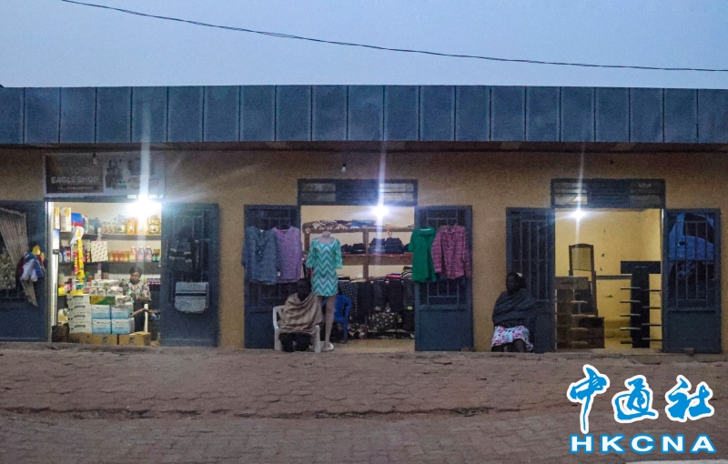 盧旺達共和國是中非東部主權國家,人口主要居住在農村地區,以年輕人為主,密度在非洲國家中位居前列。中通社記者近日實地探訪盧旺達首都基加利一村落,發現當地生活方式趨於原始,大量房屋用泥磚建造,隱藏在田地之間。村民通常使用黃色水桶集中來到一處河流地點接取所有生活用水,屋內也並未設有廁所或浴室。道路中央放眼望去紅土一片,由於長旱季,塵土飛揚,甚至染紅了大部分綠葉;道路兩旁多為田地,種植大量香蕉、牛油果等作物,因此當地食物亦多選用香蕉直接烹飪。由於村落內大量房屋尚未通電,因此村民通常日落而息。圖為村落道路兩旁一些商鋪,有服裝店、髮廊以及電話卡營業廳等。(香港中通社記者 曹文毓攝) 香港中通社圖片