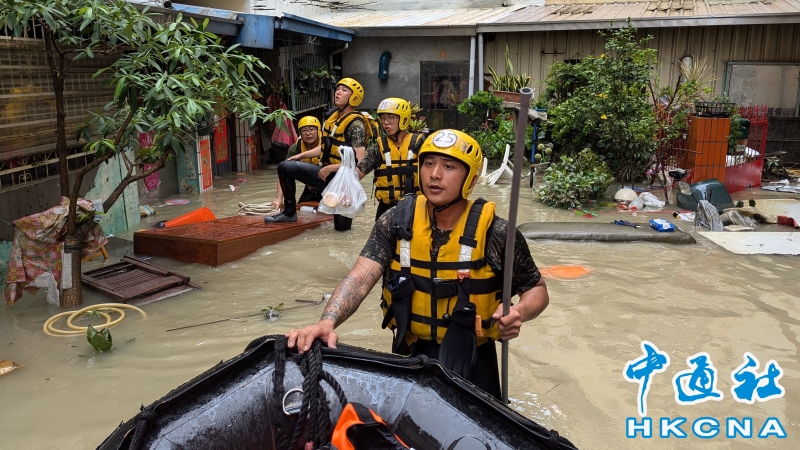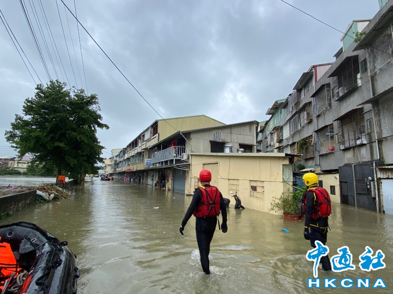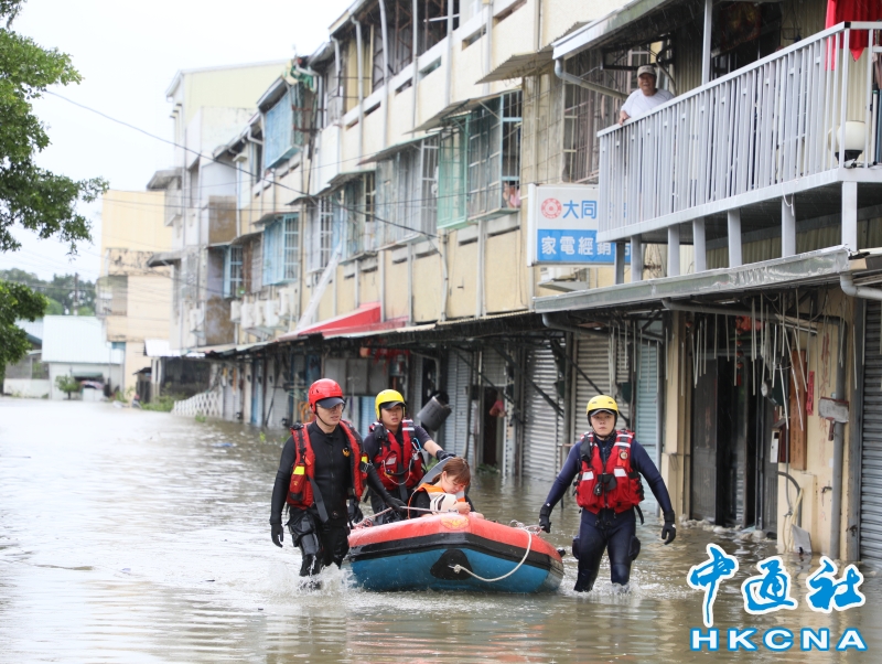 颱風導致台灣嘉義多處淹水 救護人員以橡皮艇撤離災民分享到: