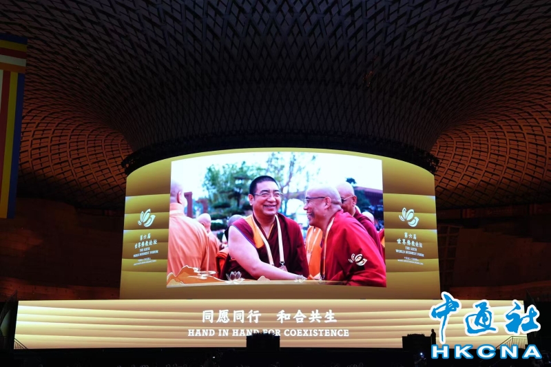 •   第六屆世界佛教論壇17日下午在浙江寧波圓滿閉幕,閉幕式上播放本屆論壇精彩回顧。 (香港中通社記者 施鑫岳攝) 香港中通社圖片