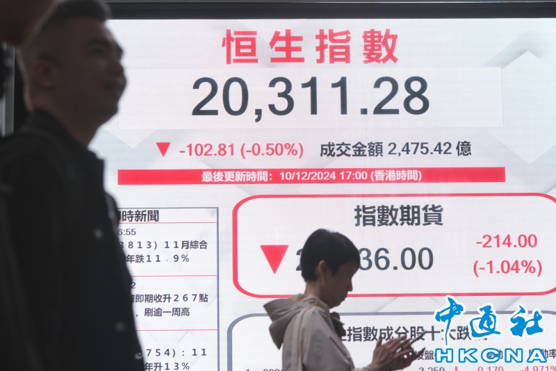 香港恒生指數跌102.81點 報20311.28點分享到: