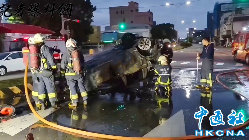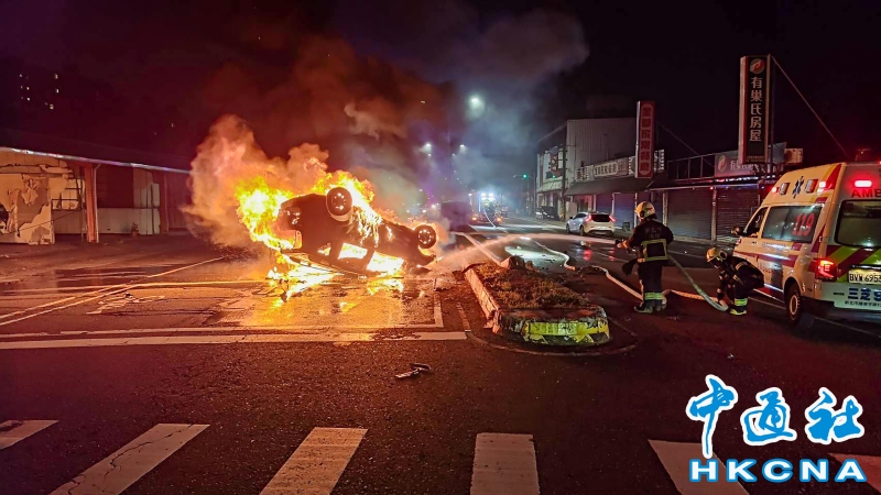 •   12月19日凌晨5時許,台灣一輛轎車行經新北市三芝區淡金公路、大湖路口,忽然撞上分隔島,然後翻覆並起火燃燒,司機自行脫困爬出車外,僅輕微擦傷。司機疑似疲勞駕駛導致意外。 香港中通社圖片