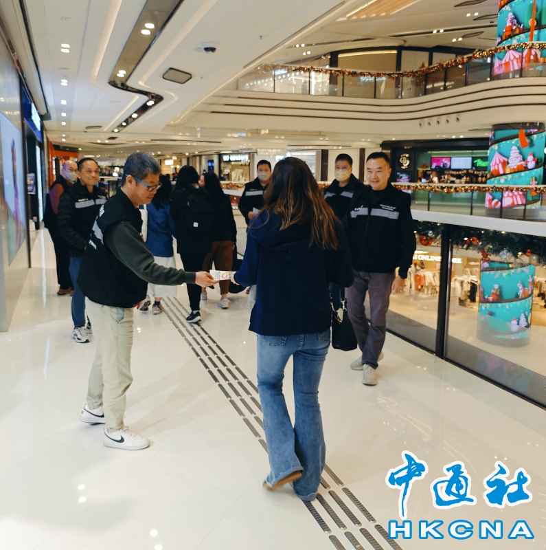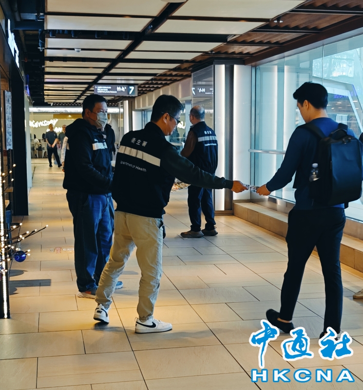 •   香港衞生署控煙酒辦公室人員一連三天(12月16日至18日)在全港各區的商場執行特別行動,加強巡邏商場的禁煙區和檢控違例吸煙人士,同時向市民派發單張,加強宣傳教育。圖為控煙酒辦人員於商場向市民派發單張。 香港中通社圖片