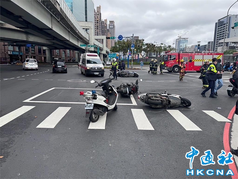 台灣一車突爆衝 9機車遭撞4傷分享到: