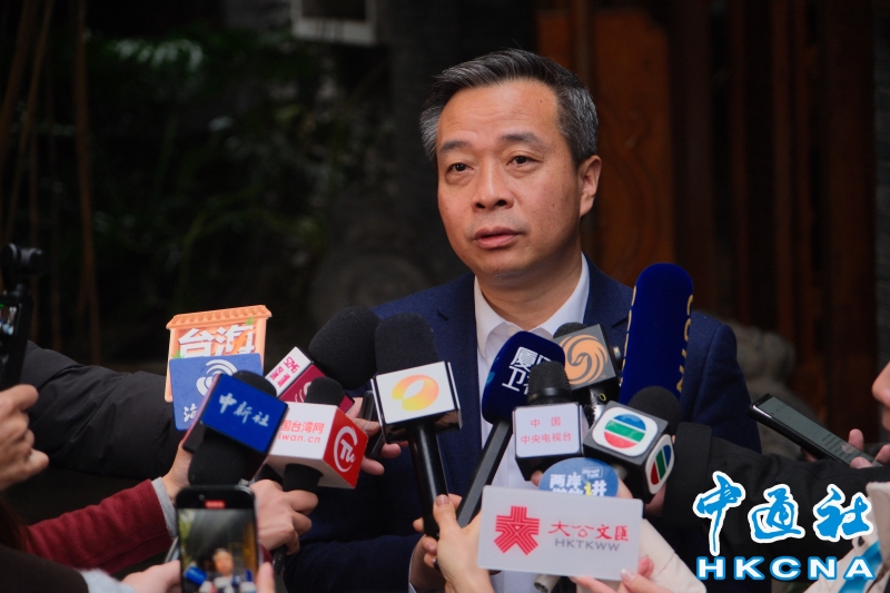 •   台灣當局前領導人馬英九一行12月23日到四川成都杜甫草堂參訪,並出席“兩岸共同弘揚中華文化”座談會。圖為座談結束後,北京師範大學副校長康震接受媒體採訪。(香港中通社記者 許其皓攝) 香港中通社圖片