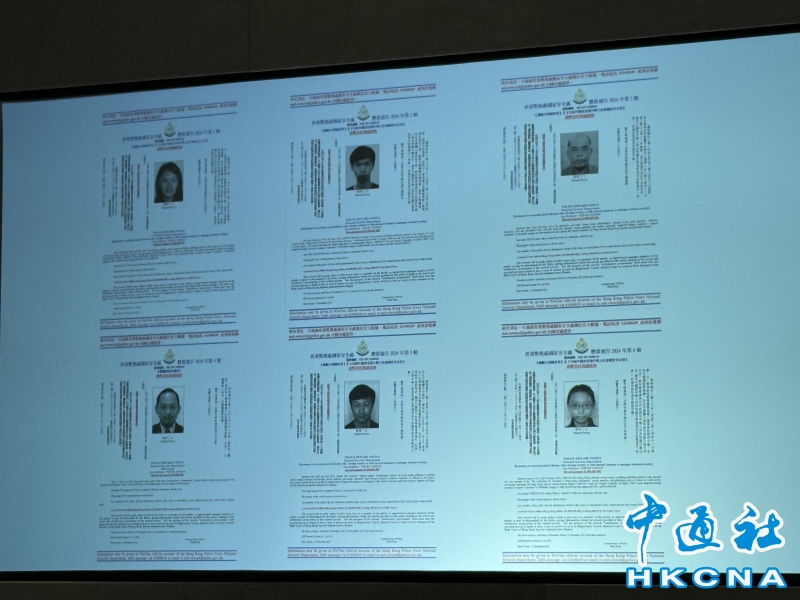 •   香港警務處國家安全處總警司李桂華24日於記者會上公佈,對6名潛逃海外人士發出通緝令並採取相關措施,包括鍾劍華、鍾翰林、劉珈汶、何良懋、鄭敬基及張晞晴,各懸賞100萬港元。 香港中通社圖片