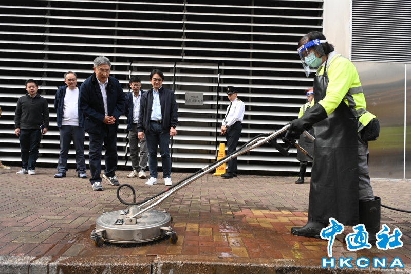 政務司副司長視察食環署使用高速清洗盤清洗街道