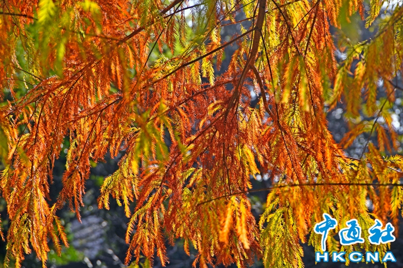 台灣台北忘憂湖畔落羽松變色迎冬日分享到: