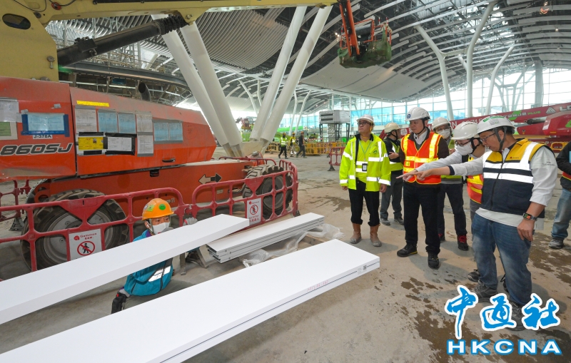 •   1月16日,香港勞工處副處長(職業安全及健康)馮浩賢(右三)巡視赤鱲角機場一個建築地盤,提醒承建商、僱主及僱員,包括輸入勞工及不同族裔勞工,注意工作安全。 香港中通社圖片