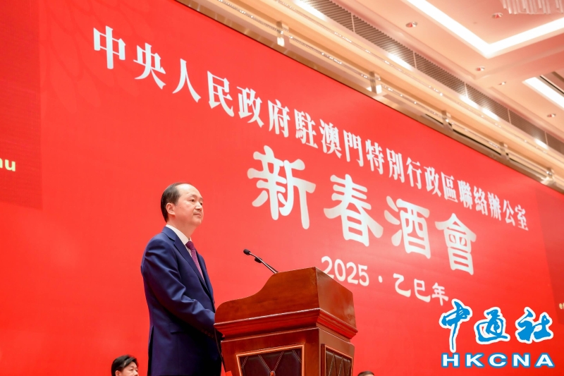 •   1月16日,澳門中聯辦主任鄭新聰在新春酒會上致辭。當日,中央人民政府駐澳門特別行政區聯絡辦公室新春酒會在中葡平台綜合體舉行。 香港中通社圖片