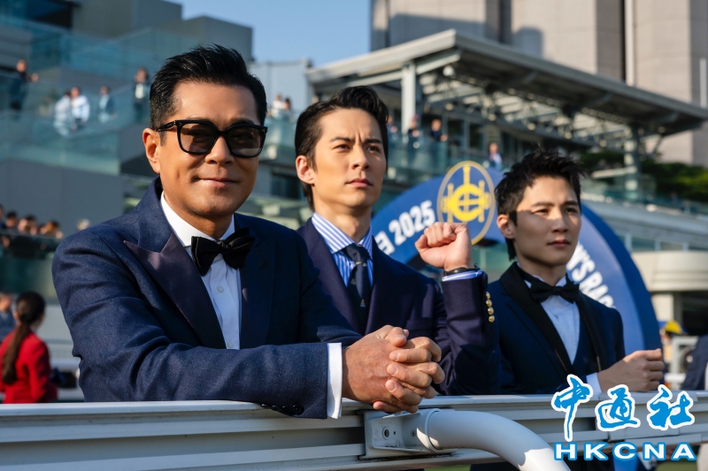 •   時尚賽馬日於1月19日在香港沙田馬場圓滿舉行,一眾入場人士盛裝出席。 形象大使古天樂(左)偕同型男朱鑒然及湯君慈以時尚型格紳士打扮矚目亮相。 香港中通社圖片