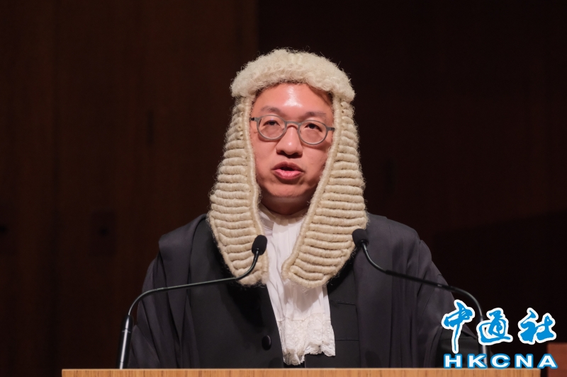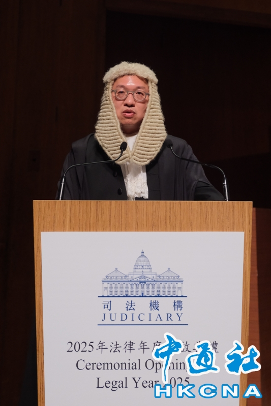 •   香港2025年法律年度開啟典禮1月20日在香港大會堂舉行。圖為香港特區政府律政司司長林定國發表演說。(香港中通社記者 許其皓攝) 香港中通社圖片