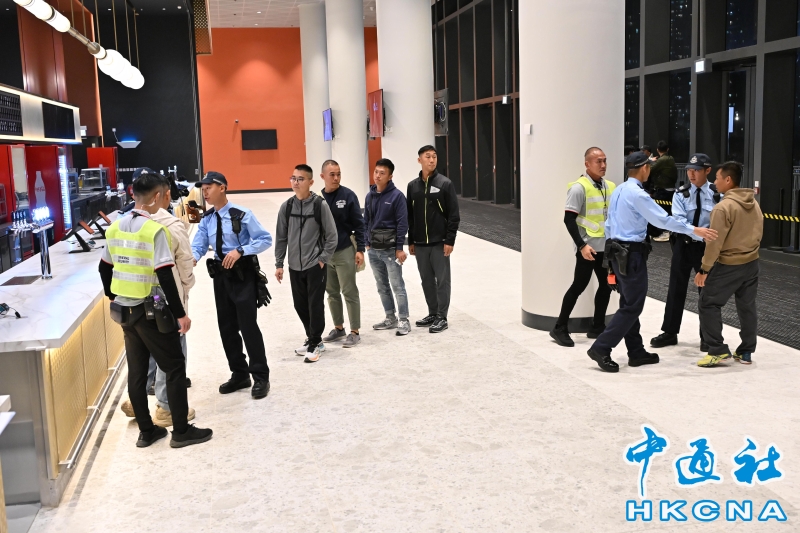 •   香港啟德體育園1月24日舉行大型演練。圖为工作人員於演練期間模擬處理糾紛。 香港中通社圖片