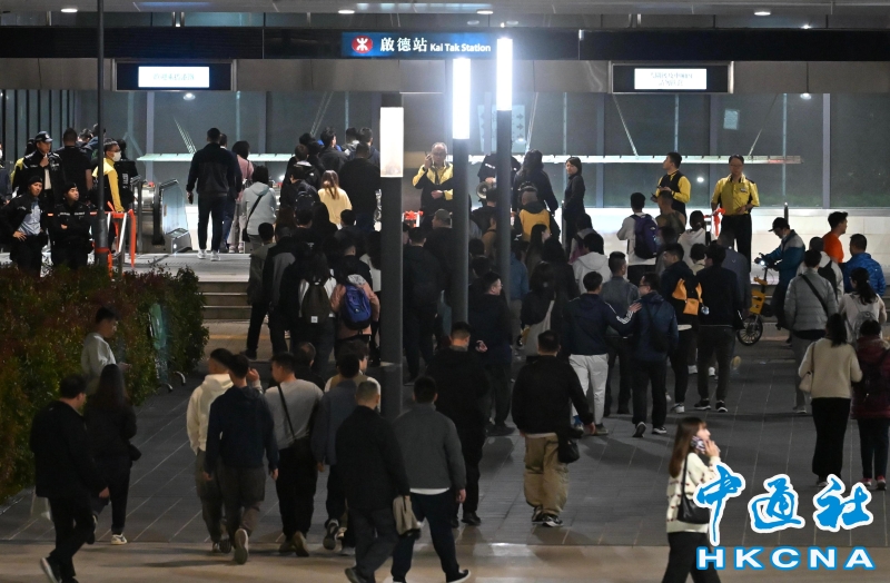 •   香港啟德體育園1月24日舉行大型演練。圖為參與者往港鐵啟德站乘車離開。 香港中通社圖片