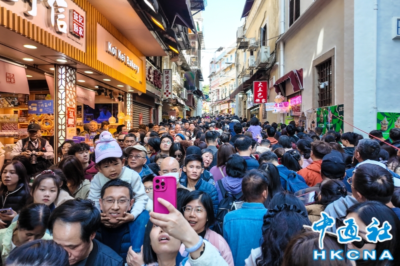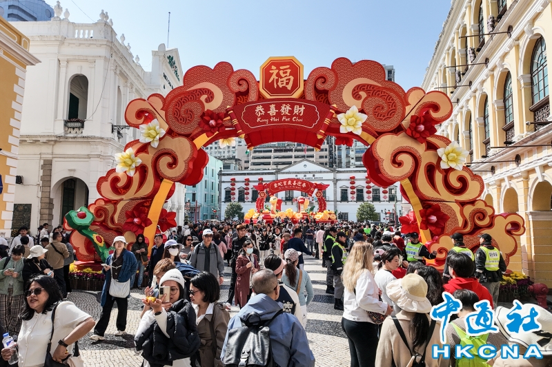 •   1月29日大年初一,澳門迎來大批人流,大三巴牌坊周邊人頭湧動,充滿新年氛圍。(香港中通社記者 曹文毓攝) 香港中通社圖片