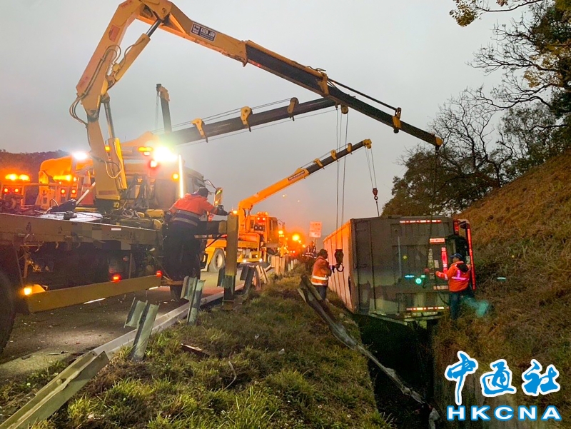 •   2月3日清晨,開工首日,台灣高速公路三號南向166.8公里外埔路段發生6車連撞事故。現場1部大貨車、5部小客車追撞,大貨車當場衝出外側邊坡,3人受傷,事故造成車輛擁堵2公里。 香港中通社圖片