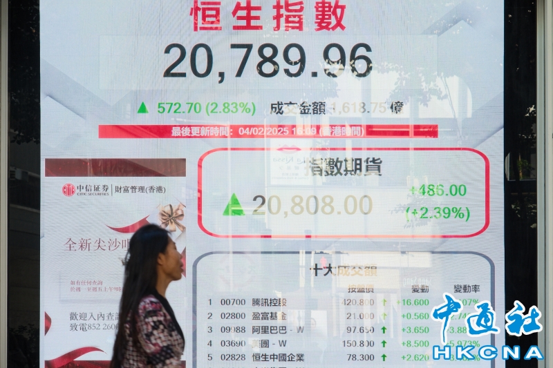 香港恒生指數漲572.70點 報20789.96點分享到: