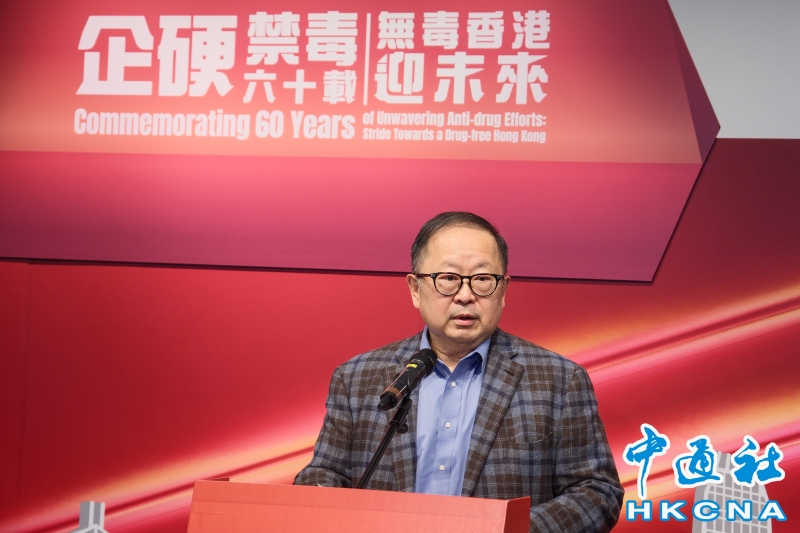 •   2月7日,香港禁毒常務委員會60周年紀念活動啟動儀式在香港大會堂舉行。今年為香港禁毒常務委員會成立60周年,禁毒常務委員會及保安局禁毒處將合辦一連串紀念活動。圖為禁毒常務委員會主席李國棟致辭。(香港中通社記者 許其皓攝) 香港中通社圖片