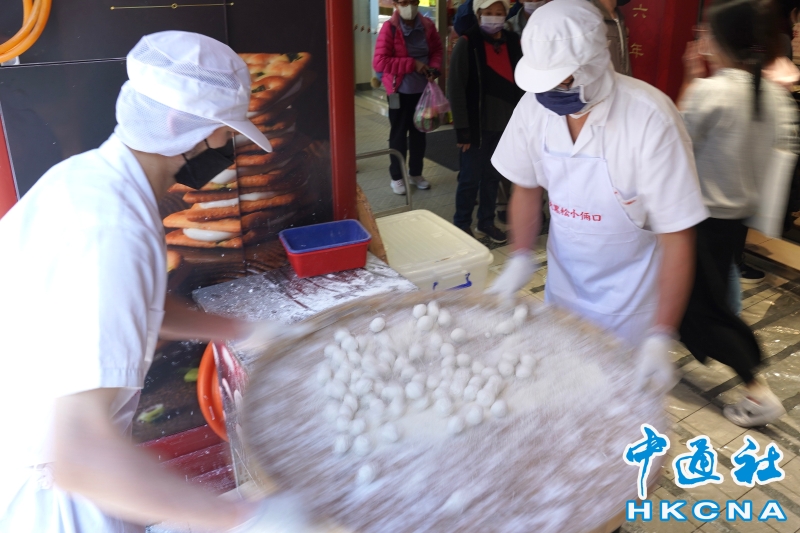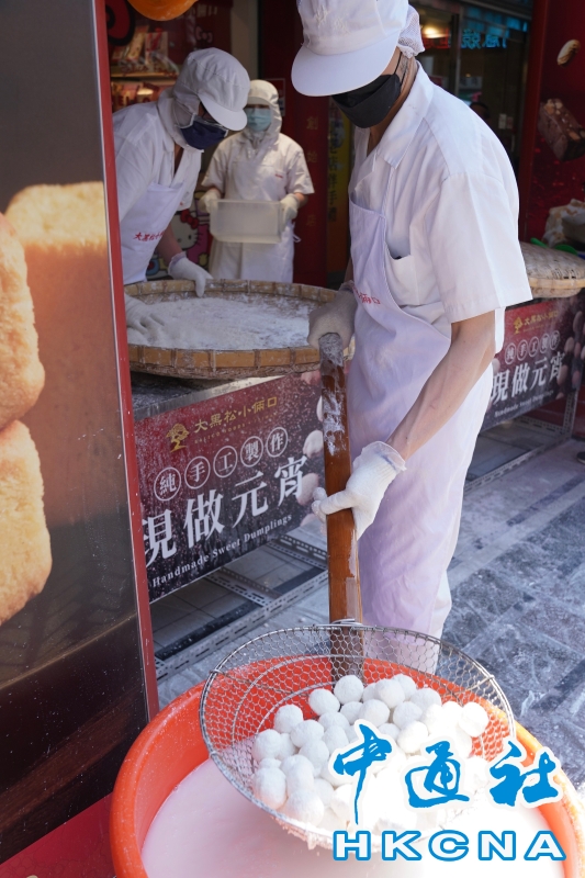 •   元宵節將至,台灣台北市一家糕餅業者2月11日在店門口現場製作湯丸,吸引顧客上門購買。 香港中通社圖片