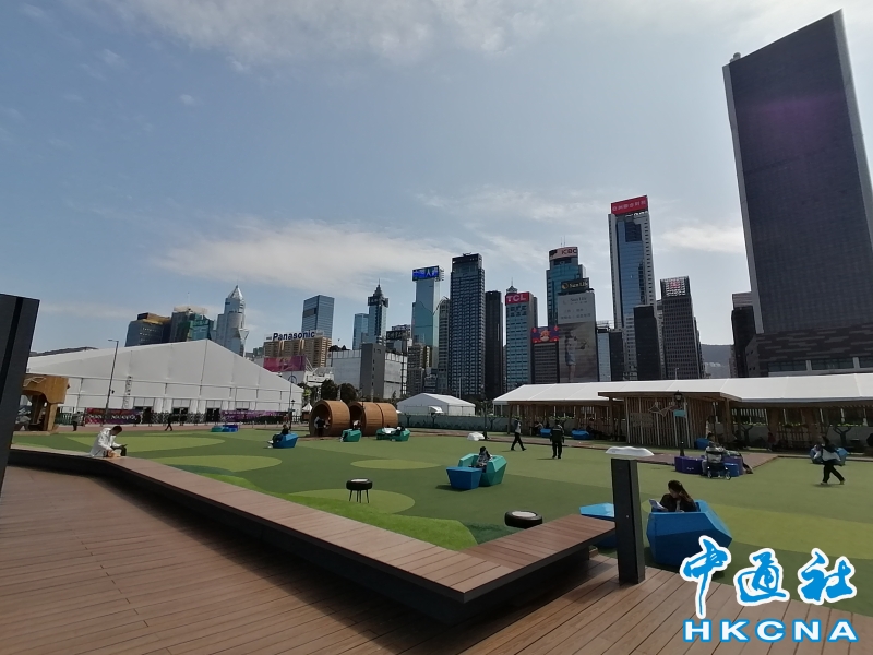 早春二月,香港灣仔新碼頭環境舒適,草坪空間成為不少市民和遊客休閑的好地方。舊的灣仔東渡輪碼頭建於六十年代。為配合灣仔發展計劃第二期填海工程,香港特區政府在灣仔新海濱建造渡輪碼頭,外觀採用現代化建築風格,利用自然通風及加強視覺效果。新灣仔碼頭樓高兩層,佔地約二千二百八十平方米,較舊有碼頭少約一百五十平方米。碼頭結構支柱以鋁板覆蓋,柱與柱之間形成猶如“石牆樹”圖案,象徵灣仔及中區一帶生長於古老石牆及有地區歷史價值的樹木。碼頭頂層建有觀景台,讓公眾飽覽維港兩岸景色。 香港中通社圖片
