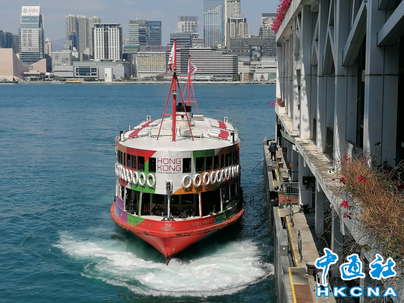 早春二月,香港灣仔新碼頭環境舒適,天星小輪穿梭維港。舊的灣仔東渡輪碼頭建於六十年代。為配合灣仔發展計劃第二期填海工程,香港特區政府在灣仔新海濱建造渡輪碼頭,外觀採用現代化建築風格,利用自然通風及加強視覺效果。新灣仔碼頭樓高兩層,佔地約二千二百八十平方米,較舊有碼頭少約一百五十平方米。碼頭結構支柱以鋁板覆蓋,柱與柱之間形成猶如“石牆樹”圖案,象徵灣仔及中區一帶生長於古老石牆及有地區歷史價值的樹木。碼頭頂層建有觀景台,讓公眾飽覽維港兩岸景色。 (香港中通社記者洪少葵攝) 香港中通社圖片