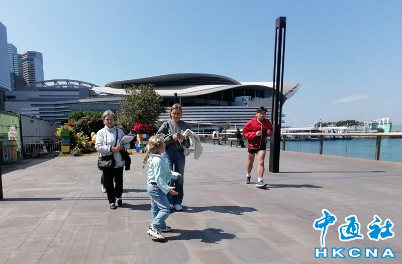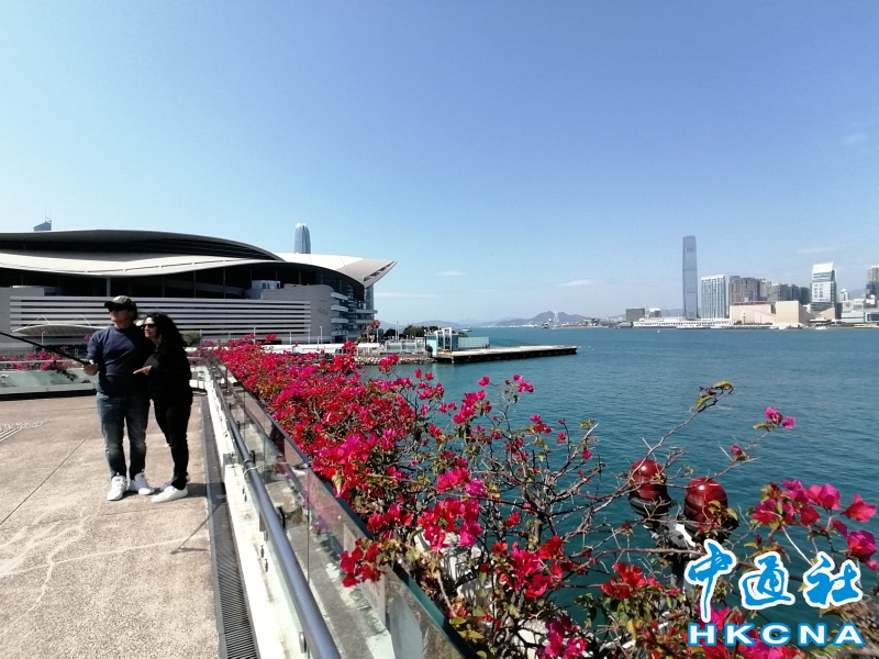 早春二月,香港灣仔新碼頭環境舒適,吸引不少遊客在此休閑。舊的灣仔東渡輪碼頭建於六十年代。為配合灣仔發展計劃第二期填海工程,香港特區政府在灣仔新海濱建造渡輪碼頭,外觀採用現代化建築風格,利用自然通風及加強視覺效果。新灣仔碼頭樓高兩層,佔地約二千二百八十平方米,較舊有碼頭少約一百五十平方米。碼頭結構支柱以鋁板覆蓋,柱與柱之間形成猶如“石牆樹”圖案,象徵灣仔及中區一帶生長於古老石牆及有地區歷史價值的樹木。碼頭頂層建有觀景台,讓公眾飽覽維港兩岸景色。 (香港中通社記者洪少葵攝) 香港中通社圖片