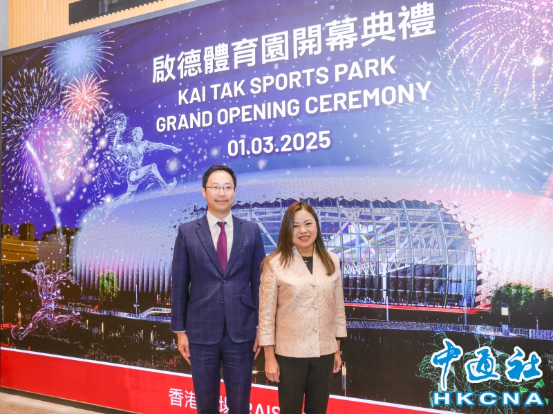 •   2月20日,香港特區政府文化體育及旅遊局局長羅淑佩(右)和體育專員蔡健斌(左)在政府總部見記者,公佈涉及啟德體育園開幕典禮的內容,具體介紹門票、直播、節目等。(香港中通社記者 曹文毓攝) 香港中通社圖片
