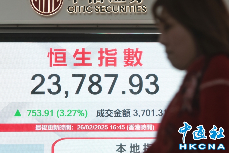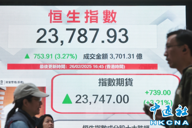 香港恒生指數大漲753.91點 報23787.93點分享到: