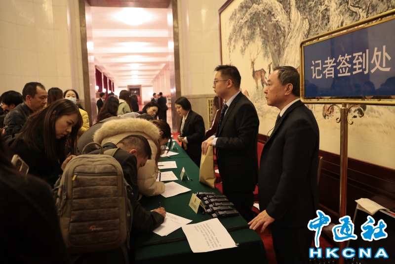 •   3月3日,全國政協十四屆三次會議新聞發布會在北京人民大會堂舉行。大會新聞發言人劉結一向中外媒體介紹本次大會有關情況并回答記者提問。圖為大批記者關注新聞發佈會,早早到場簽到。(香港中通社記者 謝光磊 攝) 香港中通社圖片