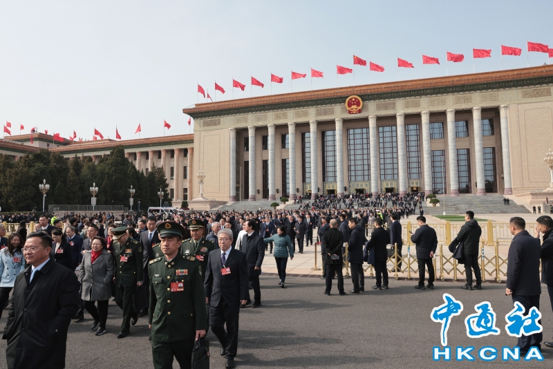 •   3月4日上午,十四屆全國人大三次會議在北京人民大會堂舉行預備會議,通過了大會議程。 ​​​圖為會議結束後,代表們步出會場。(香港中通社記者  謝光磊 攝) 香港中通社圖片