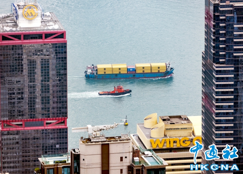 •   3月4日,香港特區政府統計處公布,2024年全年的港口貨物吞吐量較一年前同期上升1.0%,達17670萬公噸。當中,抵港港口貨物較一年前同期下跌0.5%,為11110萬公噸,而離港港口貨物較一年前同期則上升3.9%,達6560萬公噸。2024年第四季的港口貨物吞吐量較一年前同期上升1.1%,達4430萬公噸。圖為在維港上行走的貨船。 (香港中通社記者 徐文峰攝) 香港中通社圖片