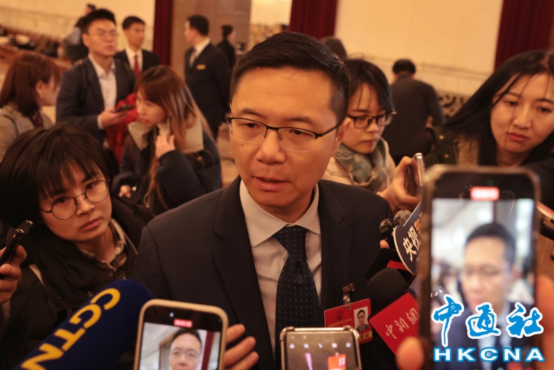 •   3月5日,十四屆全國人大三次會議開幕會在北京人民大會堂舉行。圖為全國人大代表田軒會後接受媒體訪問。(香港中通社記者 謝光磊 攝) 香港中通社圖片