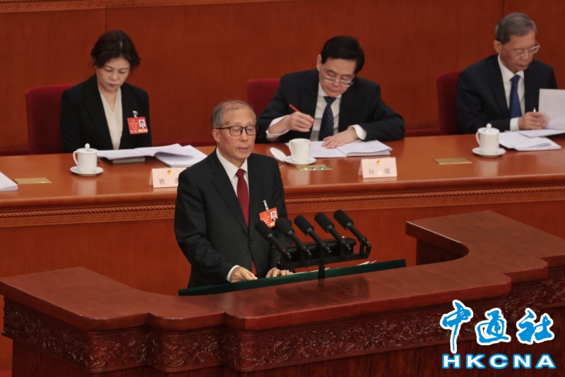 •   3月5日,十四屆全國人大三次會議開幕會在北京人民大會堂舉行。受全國人大常委會委托,全國人大常委會副委員長李鴻忠作關於全國人民代表大會和地方各級人民代表大會代表法修正草案的說明。(香港中通社記者 謝光磊 攝) 香港中通社圖片