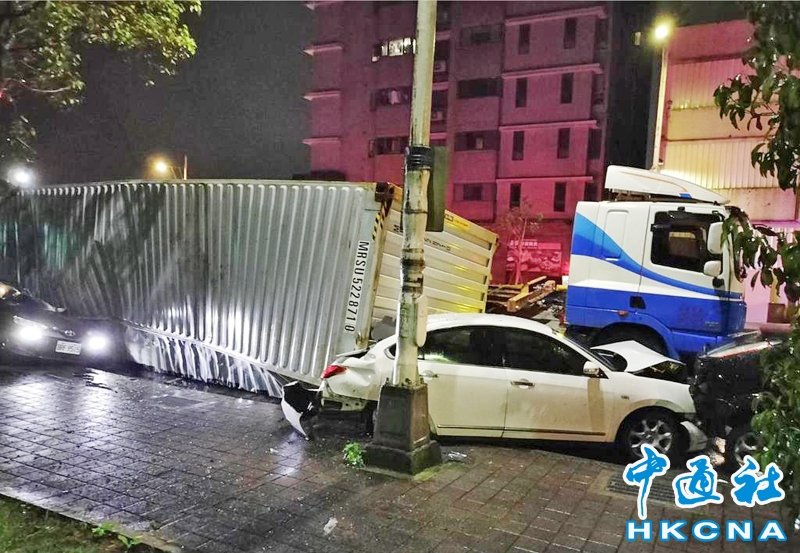 •   3月5日清晨,台灣一輛貨櫃車行經基隆市七堵區實踐路時,疑似失控翻覆,壓扁停放在路邊的5輛小客車,幸好當時車上均無人,並無造成傷亡,至於肇事原因有待警方後續釐清。 香港中通社圖片