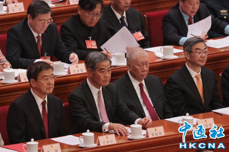 (中國兩會)梁振英、何厚鏵列席十四屆全國人大三次會議閉幕會