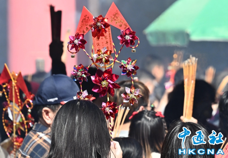 香港沙田車公廟是香港新界沙田區大圍一座廟宇,其中在現有廟宇建築物後舊廟為一座香港二級歷史建築,主祀車公。車公,是宋朝末年的一名忠臣,蒙古滅宋,宋帝昺逃到廣東,車公一直護駕到香港,途中病逝。故受到當地鄉民的紀念與奉祀。車公誕原為農歷年初二,蓋因年初三是“赤口”,不宜拜年,男女善信於是改於年初三拜車公了,每年農歷年初三,車公廟就會人頭湧湧、香火鼎盛,各男女善信上香朝拜後多會轉動壇前的銅風車,祈求新一年轉出好運新機。據華人廟宇委員會指,車公廟每年參拜人數達50萬人次。圖為參拜的市民手持彩票祈求好運。 香港中通社圖片