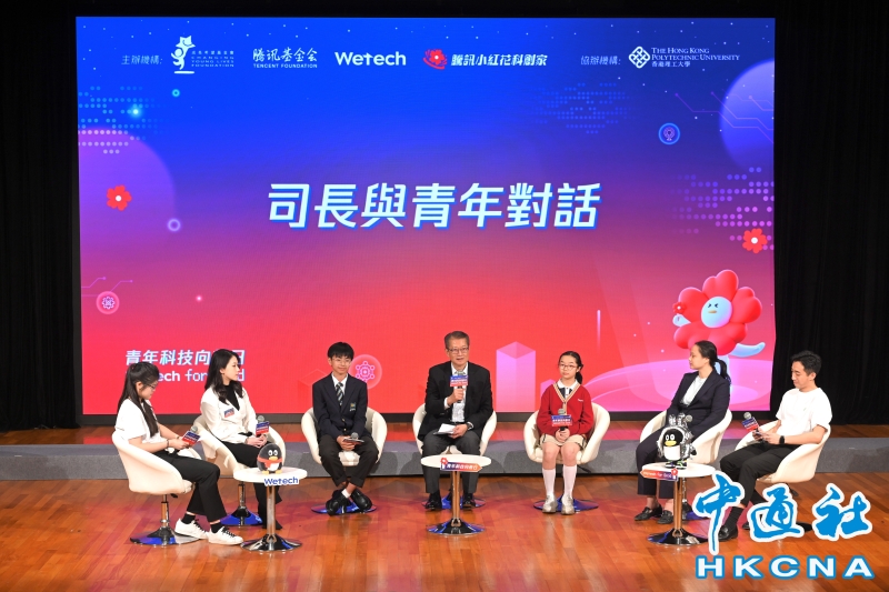 •   3月15日,香港財政司司長陳茂波出席騰訊“青年科技向善日WeTech for Good”。圖為陳茂波司長(中)與青年對話。 香港中通社圖片
