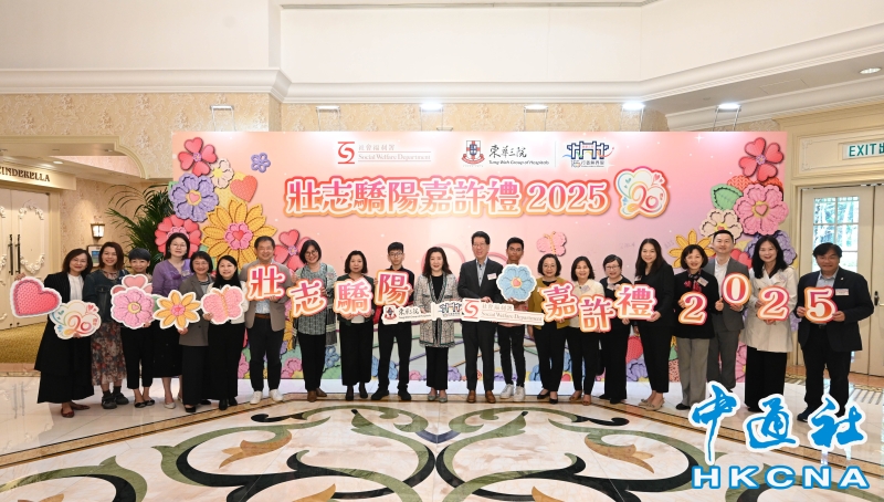 •   3月15日,香港社會福利署(社署)與東華三院合辦壯志驕陽嘉許禮2025。圖為社署署長杜永恒(右十)聯同東華三院董事局主席鄧明慧(右十一)與其他嘉賓及部分獲嘉許青少年合照。 香港中通社圖片