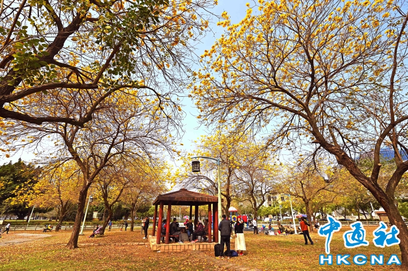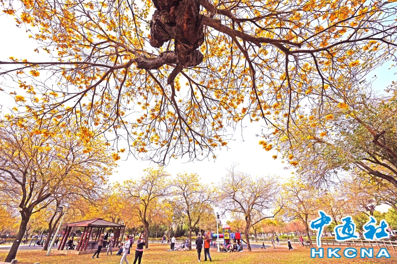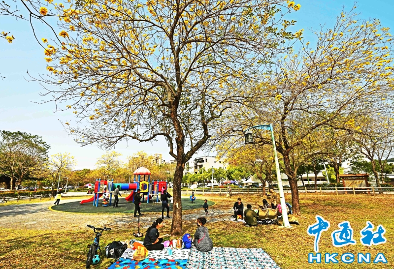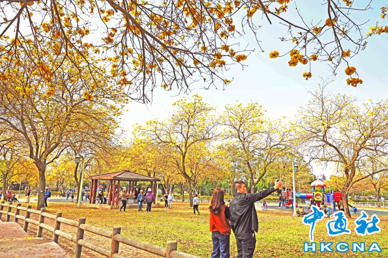 台灣台中市廍子公園黃花風鈴木盛開分享到: