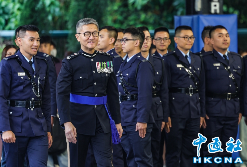 •   3月29日,香港警察學院舉行結業會操,警務處處長蕭澤頤在典禮中檢閱畢業的見習督察和學警。(香港中通社記者 曹文毓攝) 香港中通社圖片