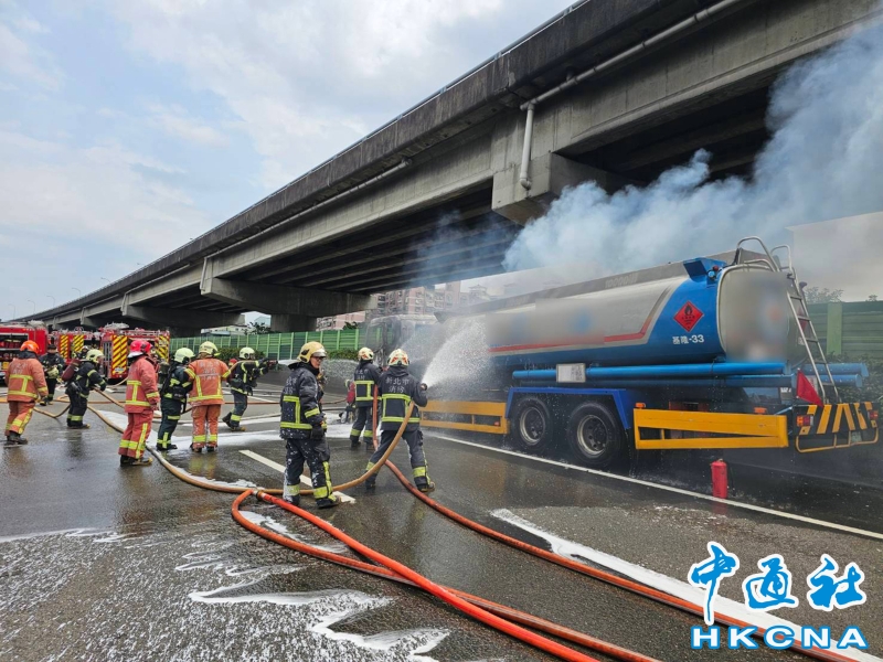 •   4月7日,台灣一輛油罐車行經一號高速公路北向28K、新北三重段時,車頭突然起火,司機自行逃離,警方全線封閉該路段,以利消防員搶救,起火原因尚待調查釐清。 香港中通社圖片
